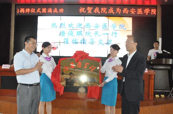 6月30日,西安医学院与咸阳中心医院签订了附属医院合作协议并举行揭牌仪式。西安医学院院长唐俊琪和咸阳中心医院副院长卢健出席了仪式。仪式由咸阳中心医院副院长张永芳主持。
