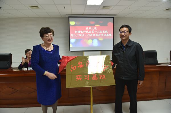 之后,我校弥曼副院长和新疆喀什地区第一人民医院邹小广院长签订了“西安医学院实习基地”合作协议,并为基地揭牌。