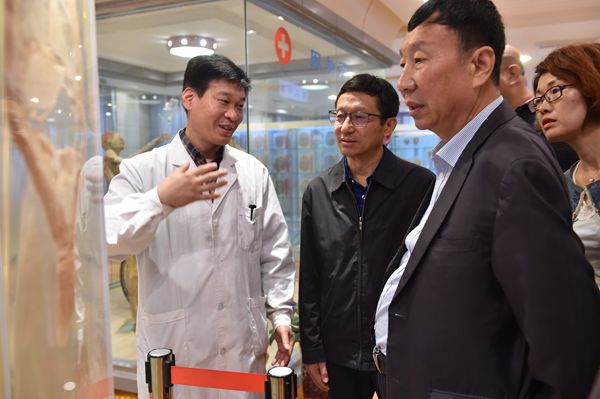 随后,邹小广院长一行到我校弘德馆、生命科学馆、基础医学研究所、基础医学转化研究所、临床技能实训中心和第一附属医院进行了交流和参观。