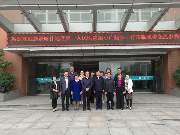 新疆喀什地区第一人民医院邹小广院长一行来我校交流参观并举行实习基地签约授牌仪式